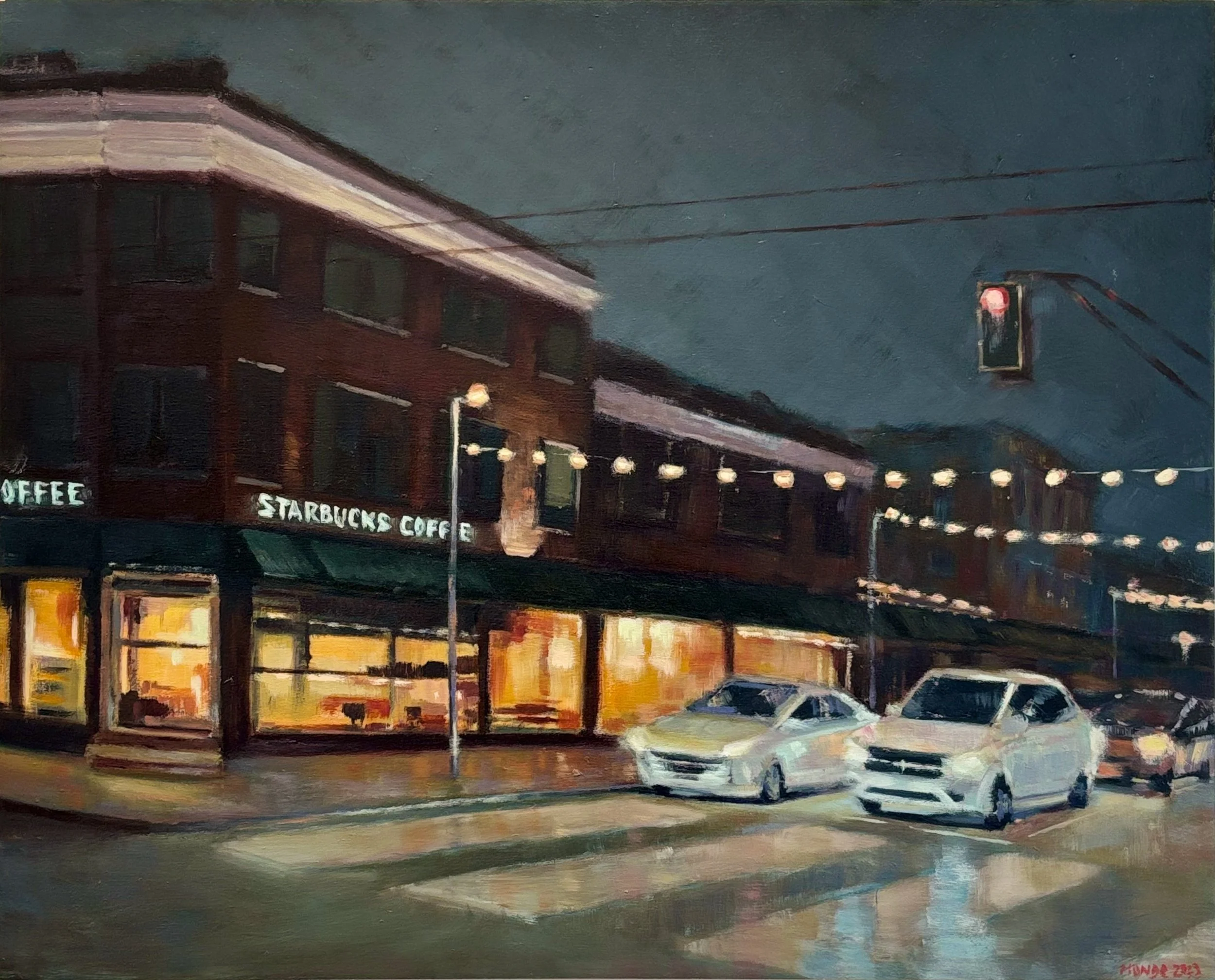 Night Falling in Millburn Avenue, oil on canvas, 24 x 30 in, 2024